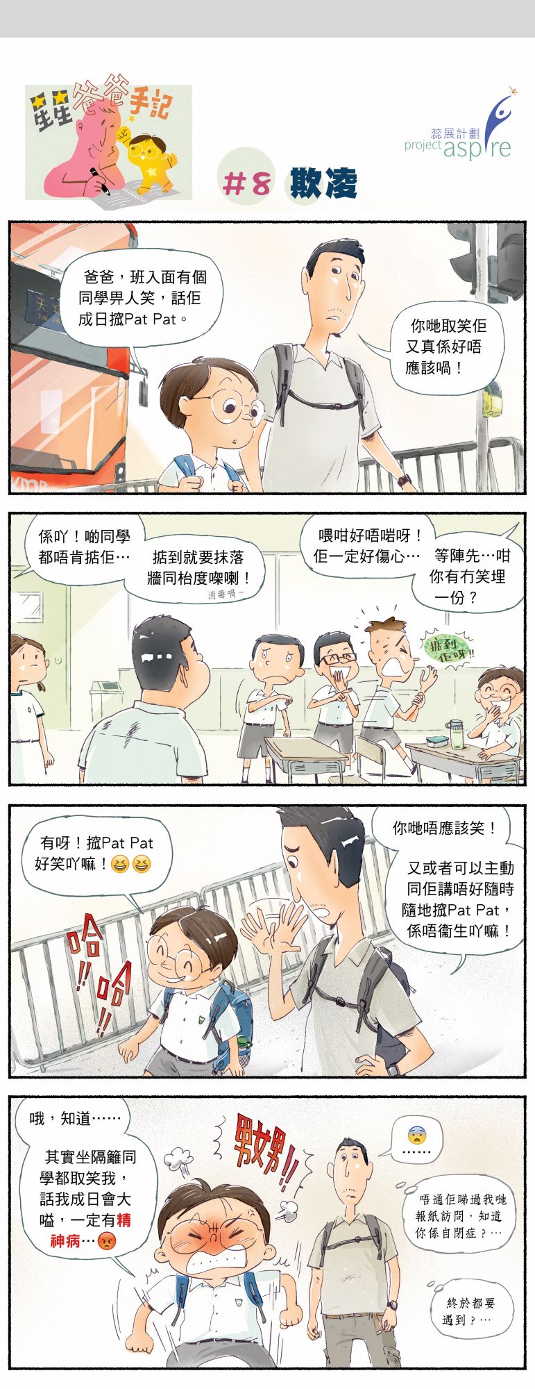 P.S. 還有一點想說:一向認知是SEN同學被人欺凌,但事實亦有SEN同學去欺凌別人。或者最重要的不是立即去想怎樣懲罰欺凌者,反而更應該投放更多時間和耐性去教導他們,傷害別人不是一件好玩的事。
