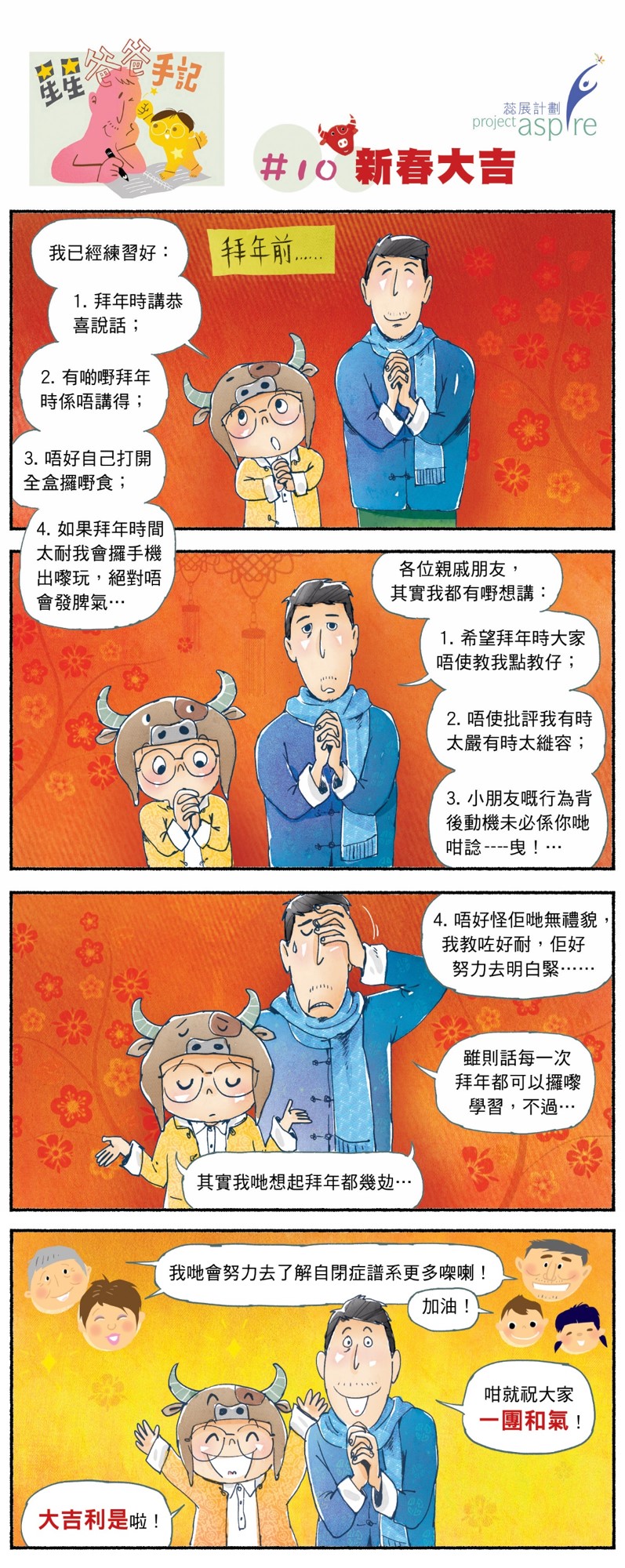 其實除咗父母同小朋友早一啲預習定拜年會發生嘅事之外,如果親友都一樣可以預習定自閉症小朋友嘅特質,包容體諒,咁結果一定會係相得益彰,一團和氣吧!